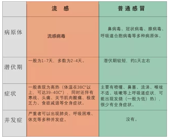 流感是由流感病毒引起的一种病毒性急性呼吸道传染病,目前已知的流感病毒有三种类型:甲型、乙型和丙型,甲、乙型流感病毒还细分为不同亚型。流感一般起病很急,全身症状重,可见持续高热,体温可高达39℃至40℃,还有畏寒、头痛、肌肉酸痛、明显疲乏等症状,而流涕、咳嗽等卡他症状相对轻。严重者可以出现肺炎、呼吸困难、休克等多种并发症,甚至导致死亡。