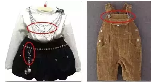 因为衣服上的小配件很有可能被小孩吸入气管,后果不堪设想…