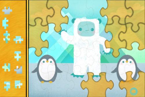 如果观察到宝宝很想把拼图拼完整,但是就是找不到窍门。可以跟宝宝说要拼的部分是只小熊。不行再提醒宝宝这里刚好是小熊白色的手,要找颜色一样的凹凸拼在一起。