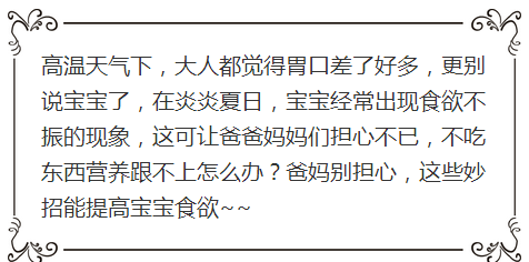 夏日宝宝食欲不振?这些妙招帮帮您~~